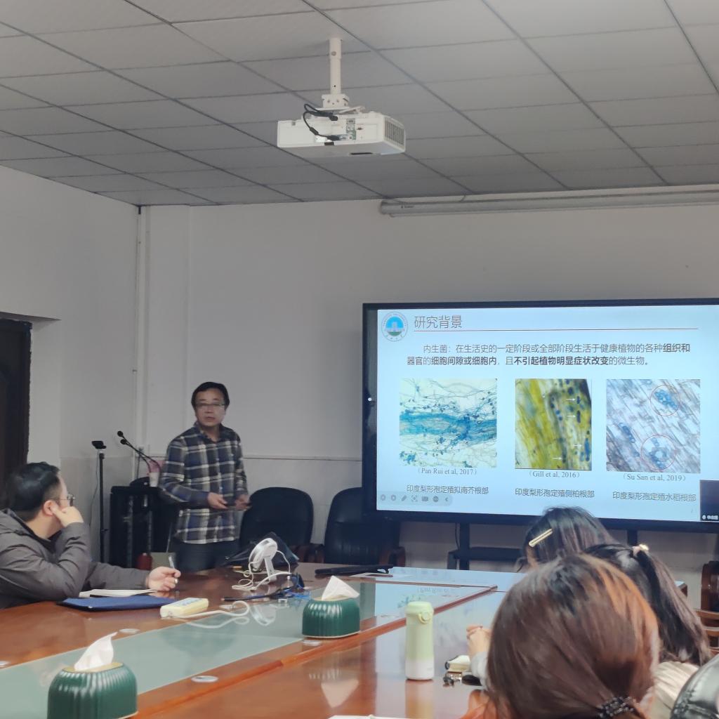 (通讯员杨笑彦)3月27日下午,麻豆a片 在西校区1-217举办2025年第三期求实导师学术沙龙。此次活动由杜小龙博士主持。导师王允作题为《印度梨形孢效应蛋白PIIN_00131对拟南芥生长发育的影响》的报告;导师马静作题为《基于纳米材料构建生物传感检测食品中生物胺》的报告;导师宋娇作题为《丁酸钠调控沙门氏菌诱导的巨噬细胞极化的作用机理》的报告,共60余名师生参加。