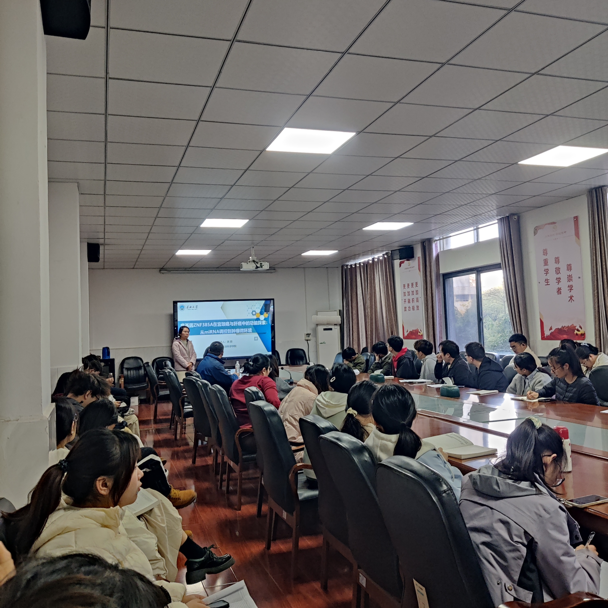 (通讯员:杨笑彦)11月27日下午,麻豆a片 在西校区1-217举办求实导师学术沙龙。此次活动由张东辉博士主持。丁保淼教授做题为《基于人工神经网络评估山药淀粉水解度及工艺参数权重》的报告,硕士生导师陈颖做题为《癌基因ZNF385A在宫颈癌与肝癌中的功能探索:从miRNA调控到肿瘤微环境》的报告;硕士生导师李曼菲做题为《玉米苗期耐渍性形成机理的初步探究》的报告;共80余名师生参加。