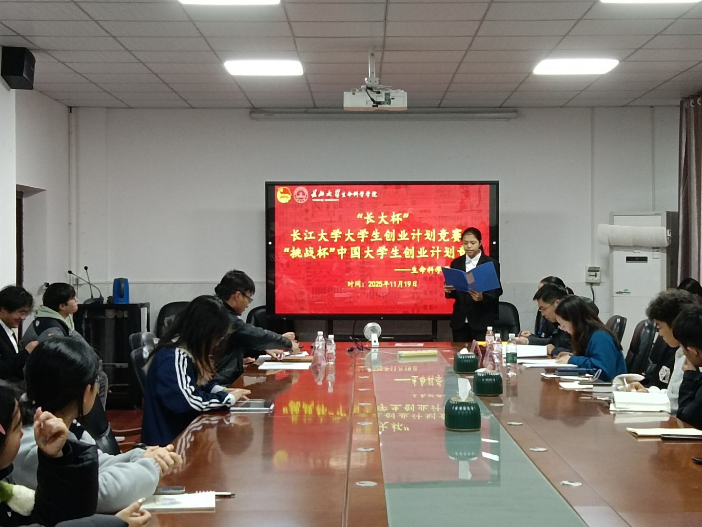 大学生创业计划竞赛暨“挑战杯”中国大学生创业计划竞赛院赛答辩会。李进、柳淑静、曹士凯、李敏4位老师担任评委。9个项目参加答辩。