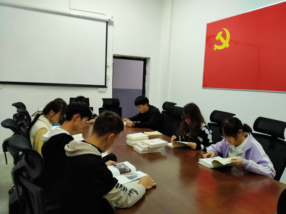 本科生第二党支部从2020年4月开始,创建党员网上学习交流园地,定期在学习园地中宣传党的理论思想,组织支部党员在网上学习园地开展学习活动,分享心得体会,2020年下半年,随着疫情后复课,本科生第二党支部又着手学习交流园地的建设,希望有一方小天地可以满足党员学习理论、交流心得、谈心谈话,以确保党员理论学习有收获、思想政治受洗礼。学习园地建设受到学院党委的大力支持,由学院党委书记亲自把关,本科生第二党支部书记参与设计和建造,充分利用学院现有环境,在1教215、220营造出了一方学习、交流的空间,园地于2021年4月正式向学院所有师生自由开放,提供了红色经典、政治理论、党建杂文等书籍,可供现场摘抄、借阅。党委书记蔡哲斌鼓励大家充分利用学习资源,线上线下多渠道结合开展学习交流。“从1921年到2021年,中国共产党历经了百年风雨,百年征程波澜壮阔,百年初心历久弥坚。”本科生第二党支部党员同志们互相分享党史书籍交流学习经验,真正做到了“学百年党史,读党史百书”,从党的百年奋斗史中不断汲取前进的智慧和力量。