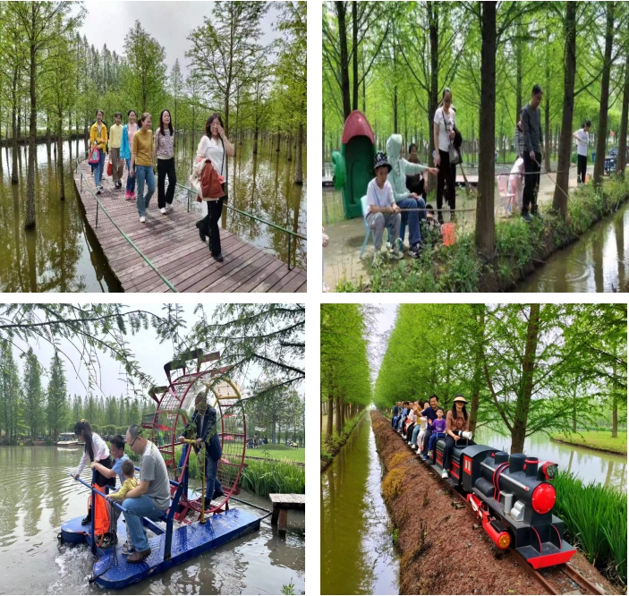 午餐过后,大家自由活动,有逛园的、有钓龙虾的、有划小游艇畅游水杉林的、有在小斗篷里话家常的、还有在摇椅上小憩的......