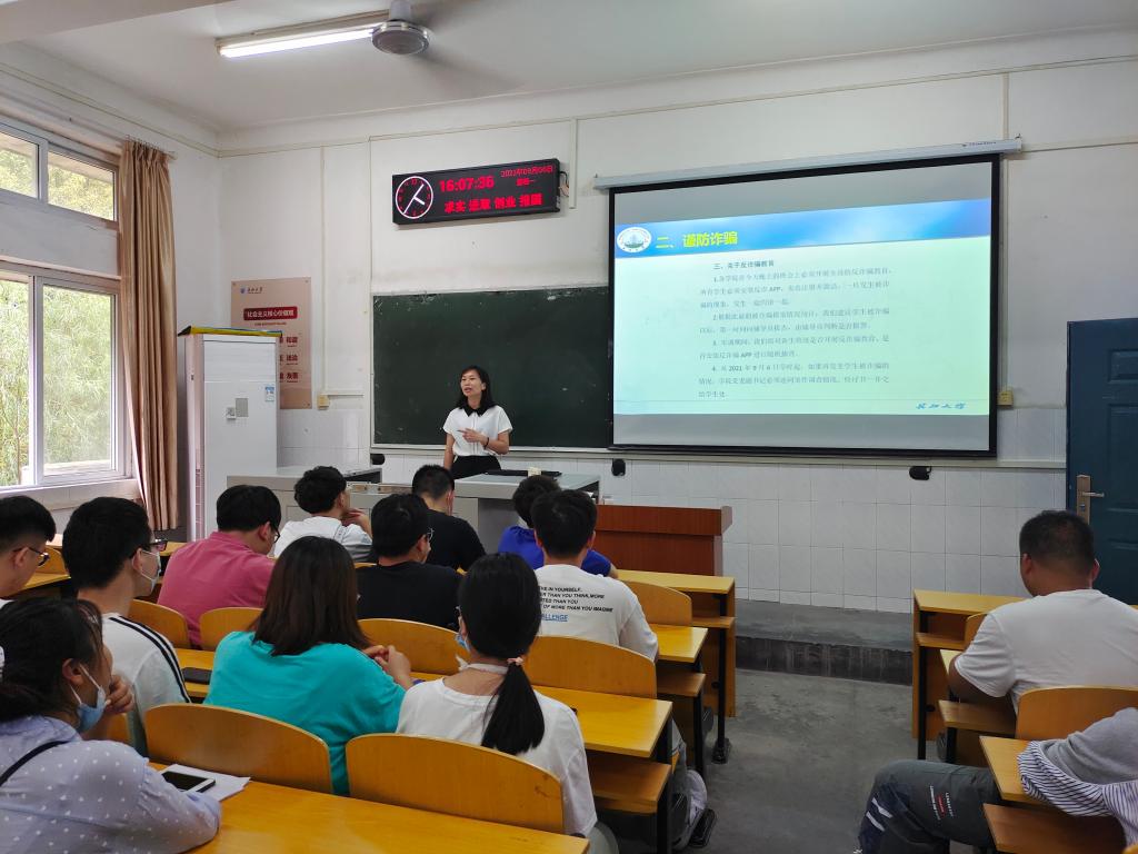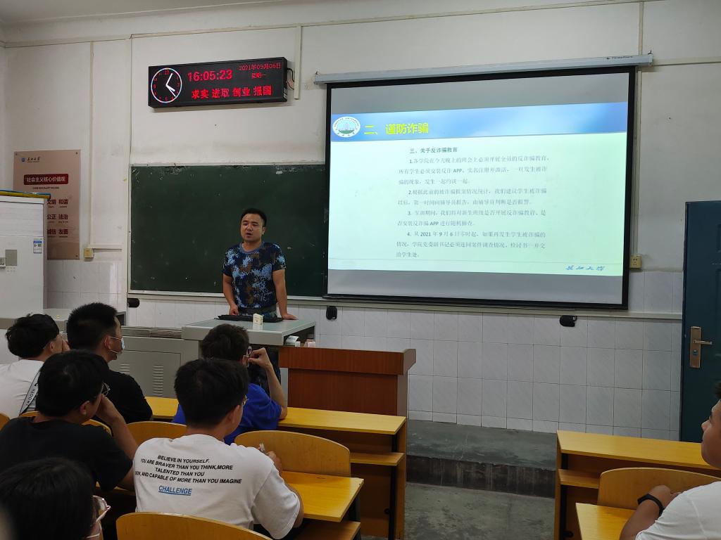 会议伊始,辅导员顾志翔向全体21级研究生新生表示了热烈的欢迎,向新生同学们介绍了学院的基本情况并展开了开学第一次安全教育,其中重点说明了如何预防电信诈骗。