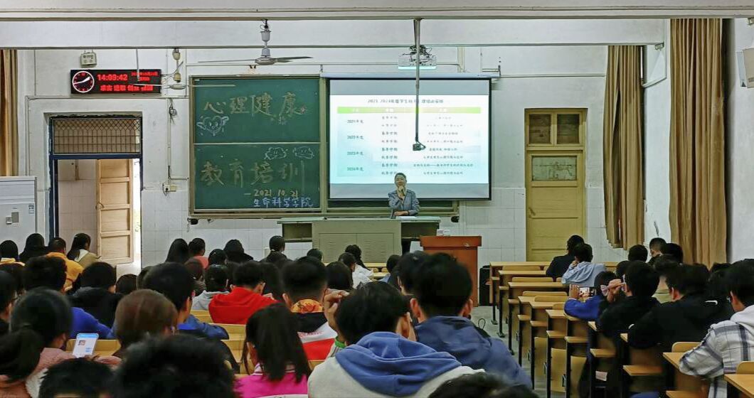 (通讯员 明陈顾/文 孙婉婷 梁瑞/摄 ) 为进一步帮助同学们掌握心理健康知识,了解心理健康体系,提升新生骨干助人意识,落实心理健康教育。2021年10月21日下午2时,由学生心理教育健康中心主办的“大学生常见心理问题的识别与应对”讲座于西校区2教T1教室召开,讲座由学工办主任范昆琨老师主讲。