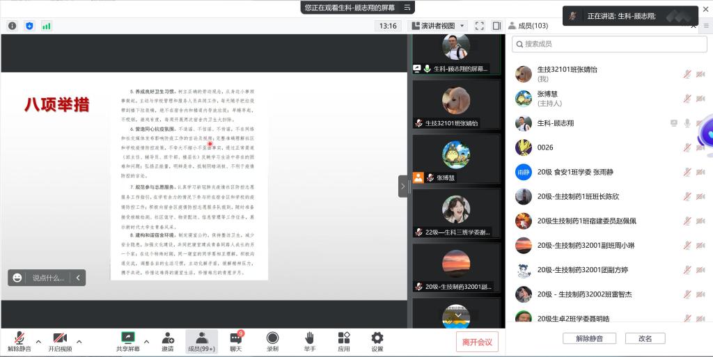 本次会议主要从关注防疫政策、学习学校文件、落实防疫责任三方面展开。会议中,由顾志翔老师带领各位学干共同学习“长大学子勇担抗疫责任八项举措” 、《致麻豆a片