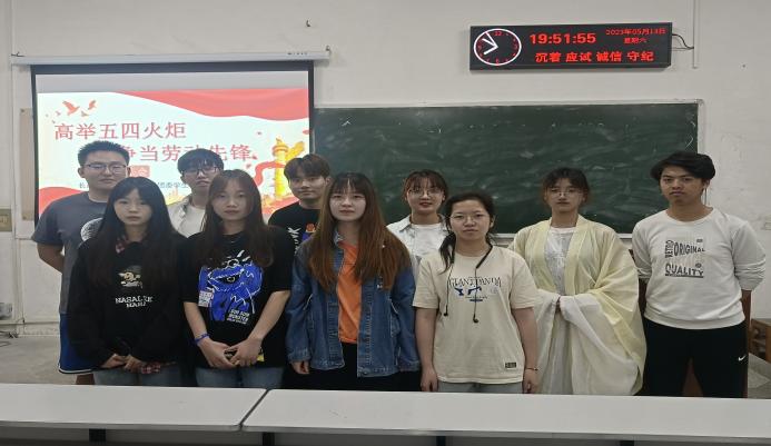 在西校区6教105教室举办了“高举五四火炬,争当劳动先锋”主题青年学习会。本次青年学习会共邀请了两位优秀学生代表主讲,二人结合自身经验,从学习、科研、社会实践等方面进行分享,启发同学们作为新时代青年该如何勇担使命,以实际行动践行青春誓言。
