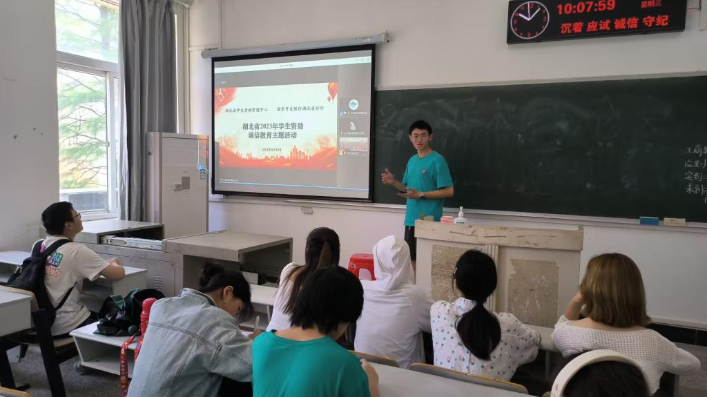 于6月8日召开资助政策专题培训会议,会议由兼职辅导员吴丹老师主持,吴老师分别从资助体系流程、生源地贷款以及诚信还款三个方面进行讲解,跟同学们详细讲解了资助流程及重点和生源地贷款,告诉毕业年级同学要诚信还款,不要因为一时不查影响个人征信,并通过会后答疑加强学生对生源地贷款还款流程、毕业生毕业确认等贷后管理工作的了解。