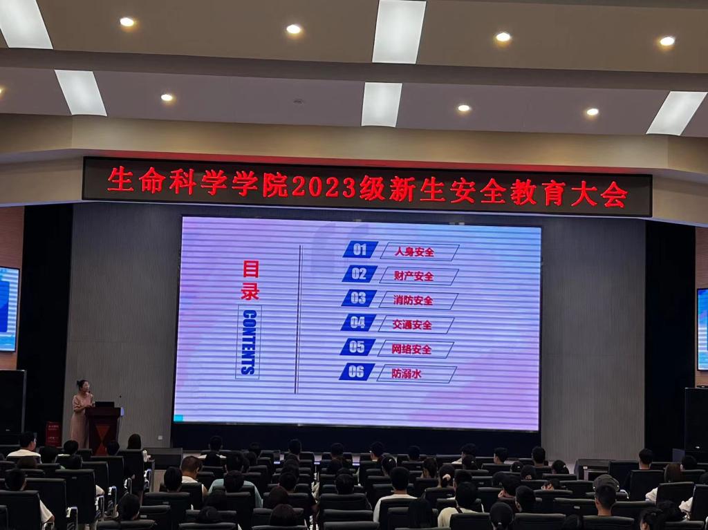 9月4日召开麻豆a片 2023级新生安全教育大会。学工办主任范昆琨老师从人身安全、财产安全、消防安全、交通安全、网络安全和防溺水等方面展开。通过身边的例子警示2023级新生需时刻绷紧安全这根弦。