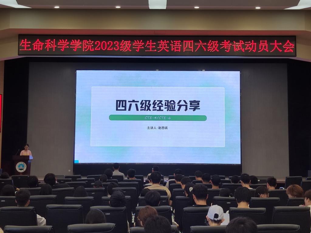 在农科大楼1058报告厅召开了2023级学生英语四六级考试动员大会。学院党委副书记万波、辅导员李敏和全体大一学生参加了会议。