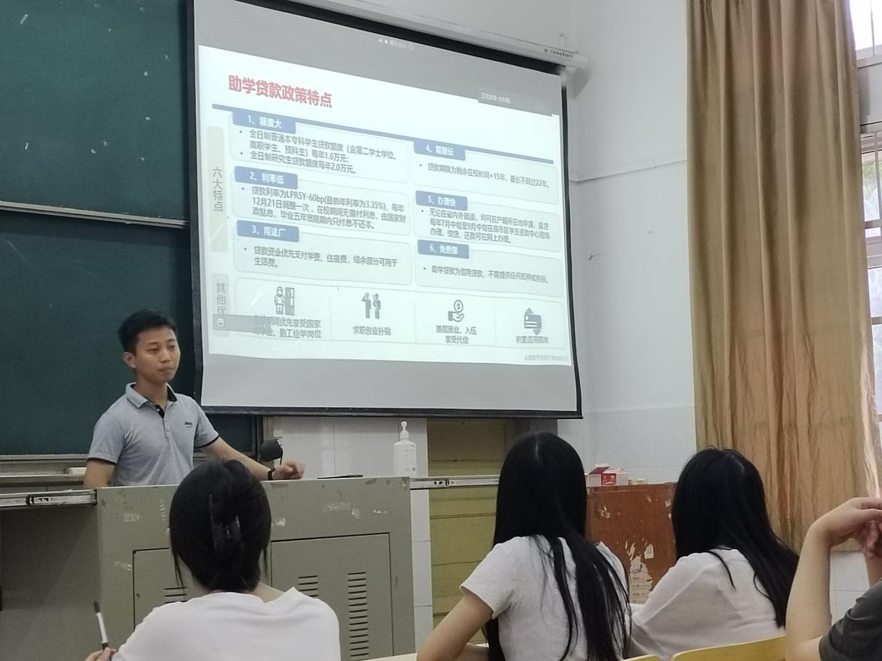 活动伊始,章崇烁老师为学生们进行了精彩的政策宣讲。老师围绕生源地信用助学贷款政策,进行了深入解读,包括如何申办、如何还款、及毕业四须知(一知毕业确认、二知还款时间、三知两个密码、四知两个变更),使学生们对相关政策有了更加清晰的认识。