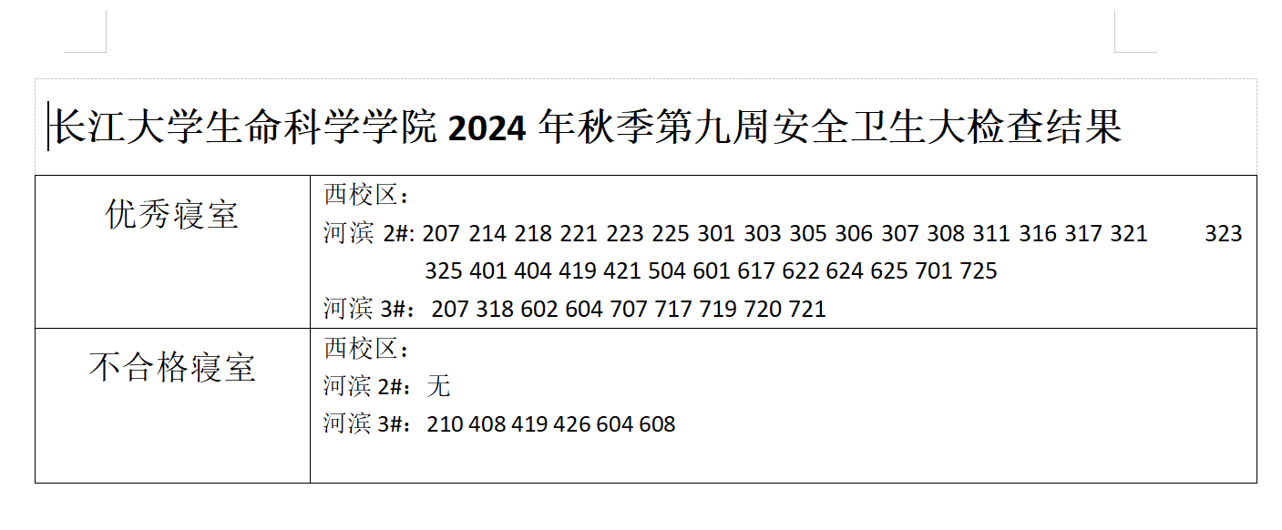 麻豆a片 2024年秋季第九周安全卫生大检查结果