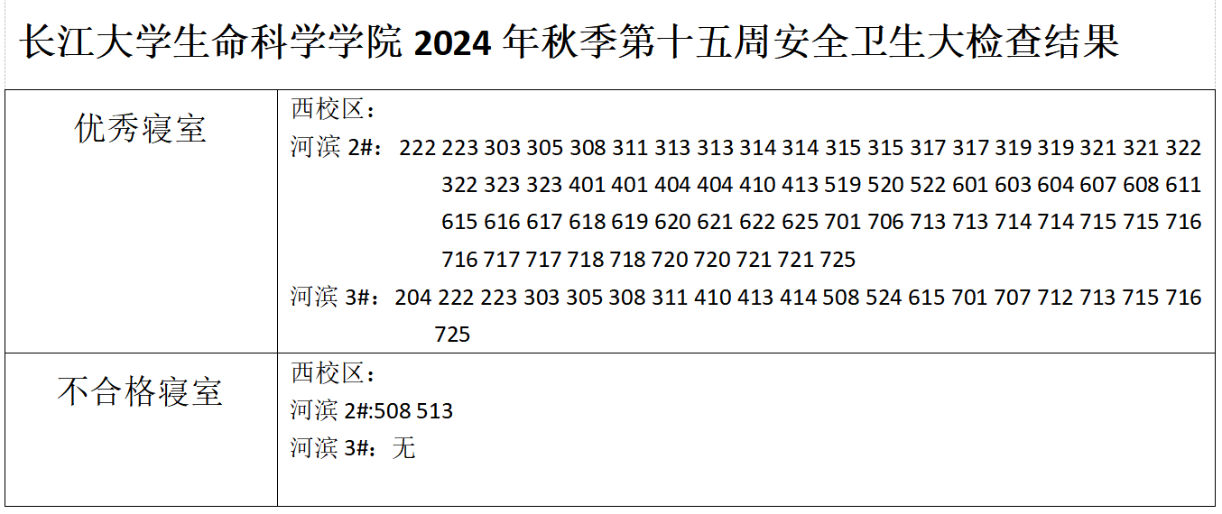 麻豆a片 2024年秋季学期第十五周安全卫生大检查结果