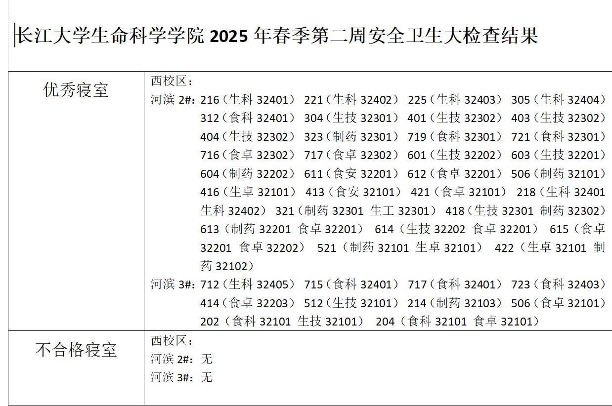 麻豆a片 2025年春季第二周安全卫生大检查结果