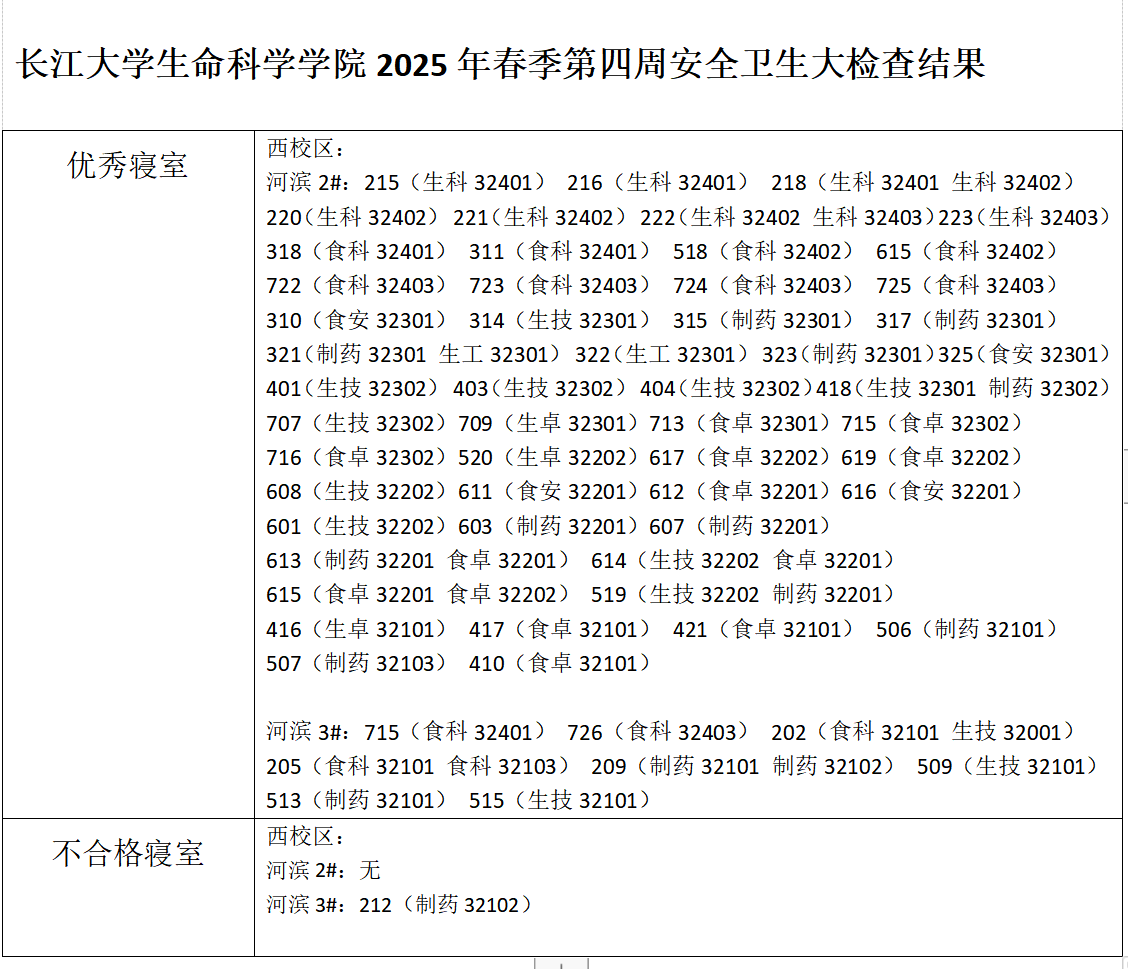 麻豆a片 2025年春季第四周安全卫生大检查结果