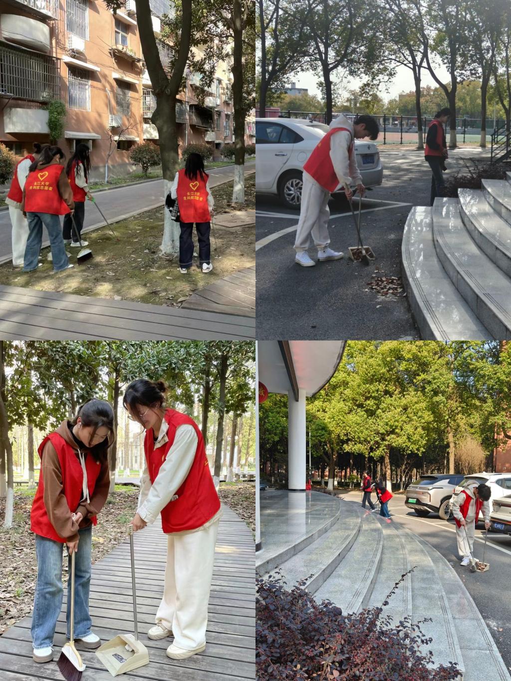 3月4日、13日、20日下午,共计56名志愿者身着红马甲,开展“‘锋’火相传”校园清扫行动。志愿者们手持扫帚、垃圾夹认真清理教学楼、草坪、林荫道和操场等区域的卫生,整理教学楼和宿舍楼周边的共享单车。“弯腰捡起的不仅是垃圾,更是对校园的珍视。”志愿者郭盼盼说。