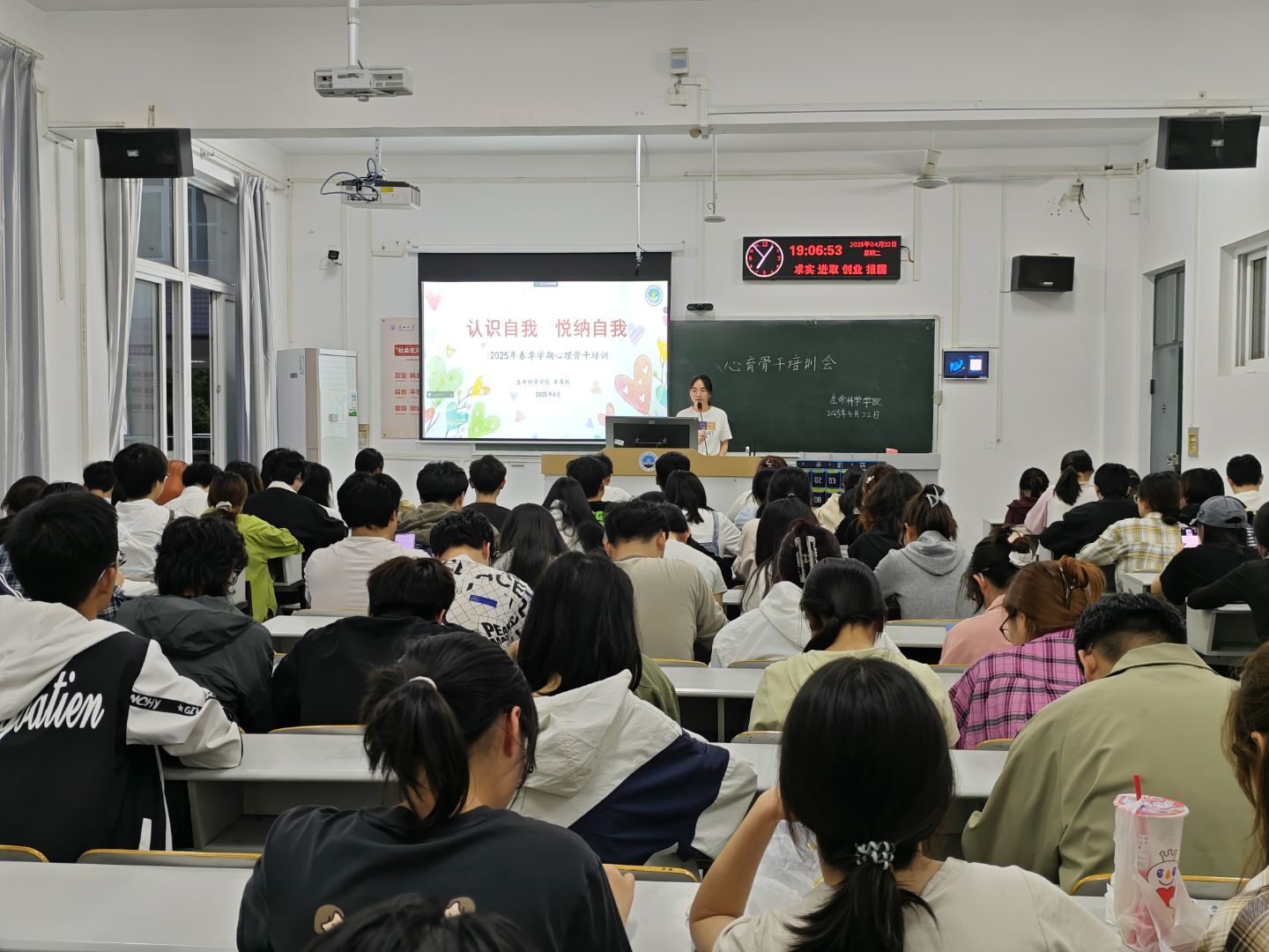面向全体学生骨干的春季学期心理健康教育培训顺利举行。本次培训以“认识自我,悦纳自我”为主题,由学院心理专干朱翠玲老师主讲,旨在提升学生骨干的心理健康素养及危机干预能力,进一步发挥其在学生群体中的桥梁纽带作用。