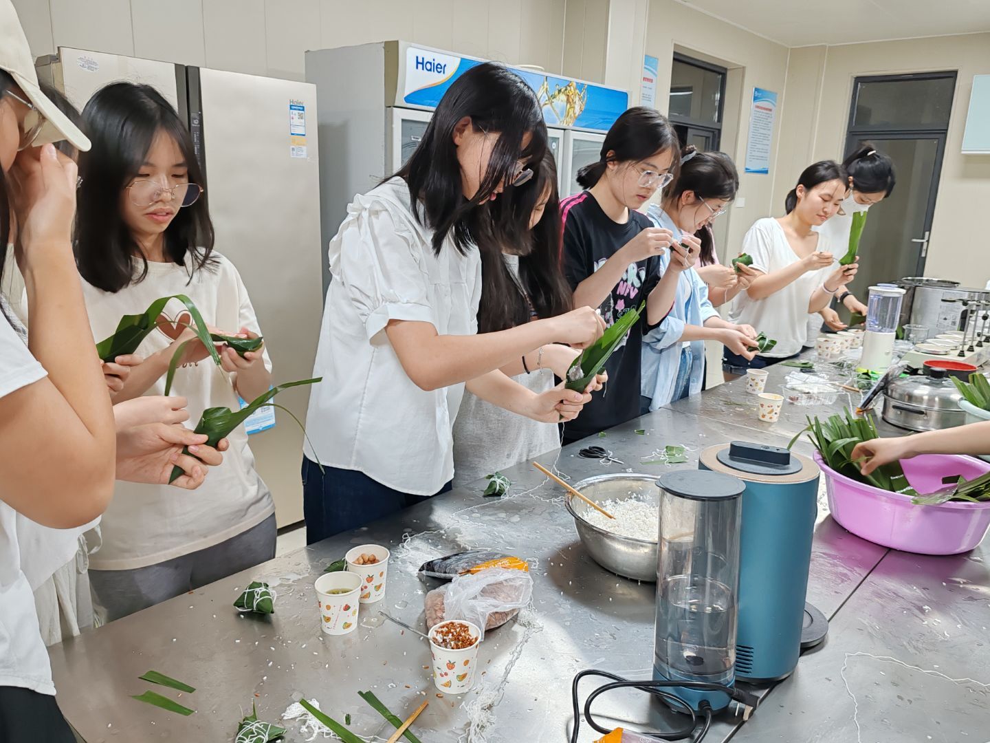 最热闹的当属互动体验区。粽叶、彩绳、糯米、红豆、蛋黄等食材一应俱全,有序陈列。同学们争相体验,撸起袖子用心包,很多人都是第一次包粽子。“看起来简单,实则困难,真是‘一看就会,一学就废’。”一位体验者笑着表示。不到半小时,体验区就生成了近百个各具特色的粽子,等候下锅。