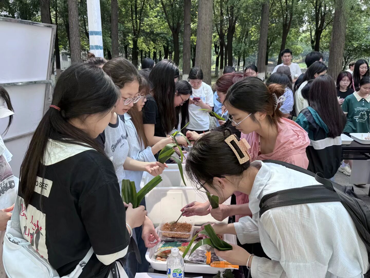 西区教学楼广场粽香四溢,热闹非凡,一场名为“美好食光,粽情分享”的美食品鉴活动,在粽叶簌簌声中拉开帷幕。作为第三届长江美育文化节的特色项目,这场以味觉为媒的文化盛宴,让三百余师生在指尖流转间触摸端午文脉。