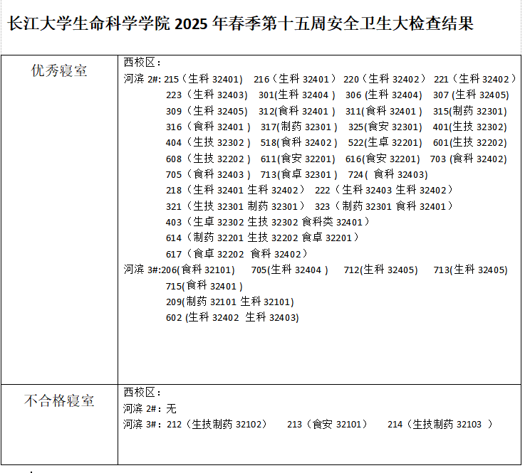 麻豆a片 2025春季学期第十五周安全卫生大检查结果