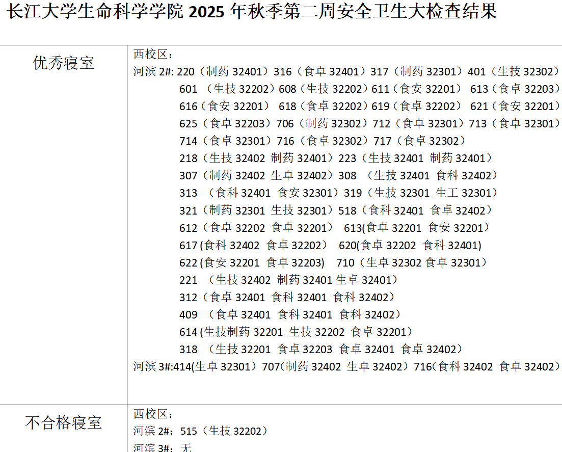 麻豆a片 2025秋季学期第二周安全卫生大检查结果
