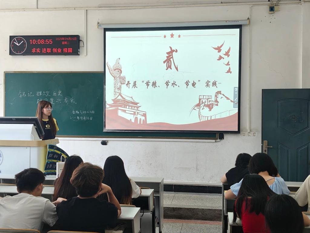 第二专题聚焦“节粮、节水、节电”主题实践。各团支部通过主题宣讲、宿舍督查等形式,积极弘扬勤俭节约的传统美德,引导学生从日常生活做起,自觉成为节约资源的倡导者与践行者,推动“节约光荣、浪费可耻”成为校园共识,助力形成绿色低碳的校园新风尚。