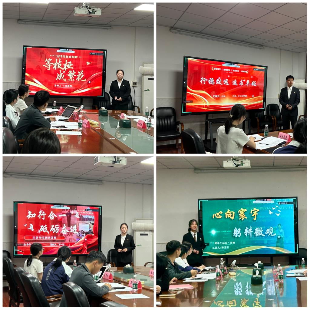 答辩过程中,各位汇报人通过PPT展示,讲述个人在学业、实践、品德方面成长的故事。生技制药32201班丁一可深耕专业知识,于学海上下求索,知行合一,砥砺奋进;而生卓32202班的陈雯轩则立下了以“明道”之心、“躬行”之步、“笃实”之态,于青春长途中踏歌逐梦,绘就理想画卷的远大志向。