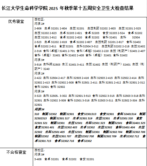 麻豆a片 2025年秋季学期第十五周卫生大检查结果