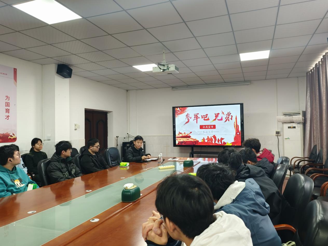 于2025年12月24日中午在1教217会议室开展了征兵宣讲活动。出席本次宣讲活动的有学院征兵就业专干章崇烁老师,退役士兵大学生窦笑爽及各班级代表。