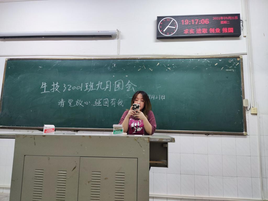 生技32001班于9月21日下午在二教205教室举行九月团会。团副全岩冰为此次团会策划人及主持人,生技32001班全体同学参与此次团会。