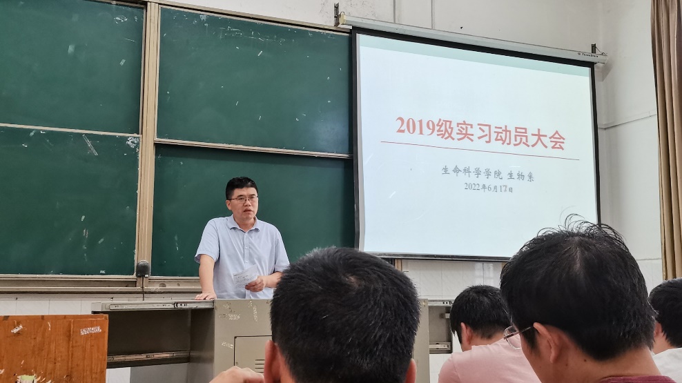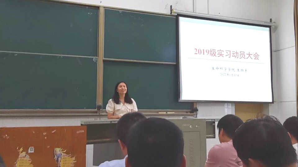 生物系于西校区2教T2教室举行2019级实习动员大会,副院长杜何为,党委副书记汪萍,实习带队老师、指导老师以及2019级生物系学生参加会议,会议由系主任陈卉主持。