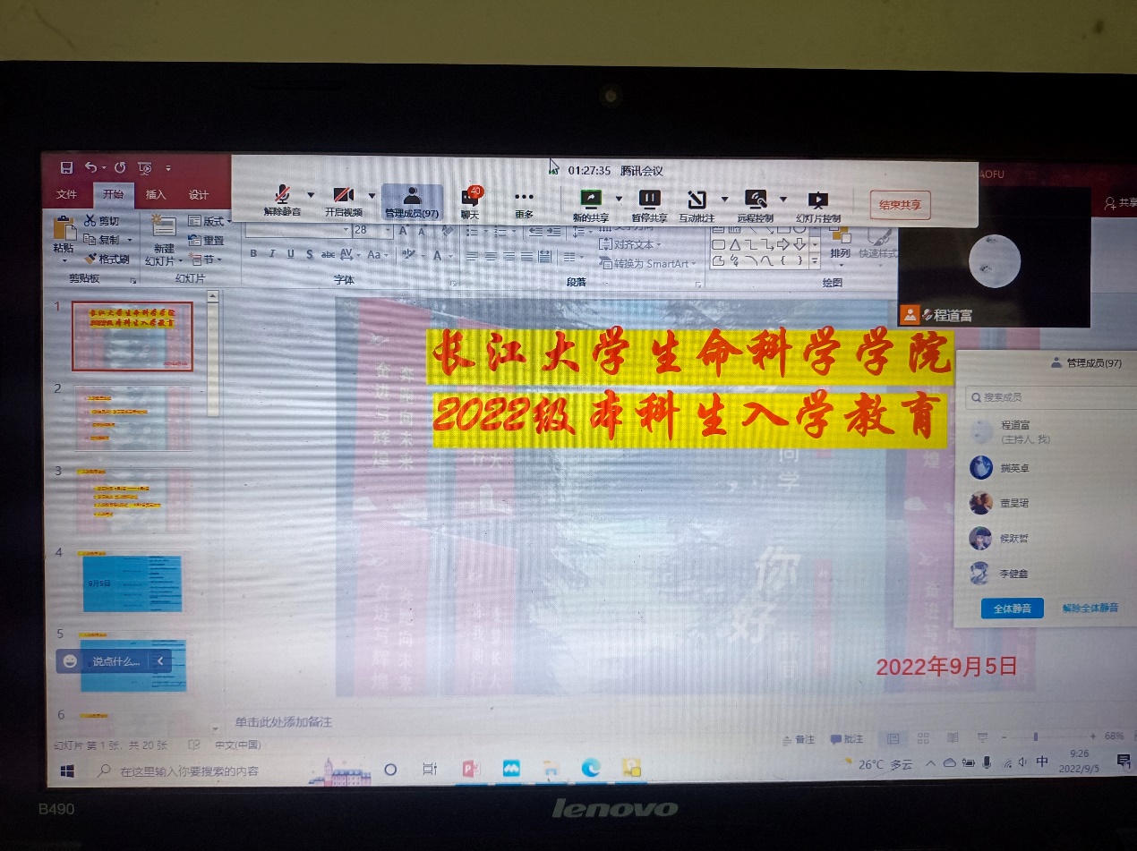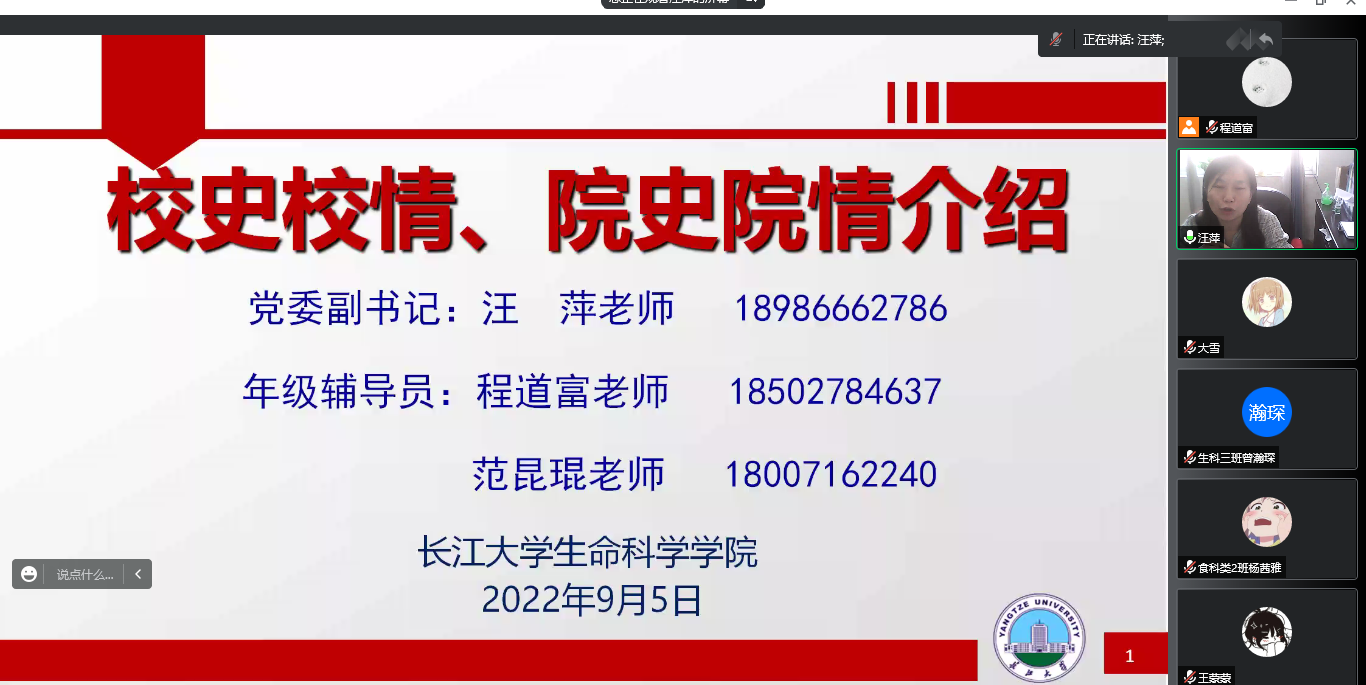 (通讯员 程道富 汪萍)新生入学教育是大学教育的起点,是整个大学学习阶段的关键时期。为帮助新生适应校园生活,加快建立学院-学生之间的情感联结,培养新生遵守校纪校规,树立规矩意识的习惯,生科学院于2022年9月5日通过在线会议平台,组织开展针对麻豆a片