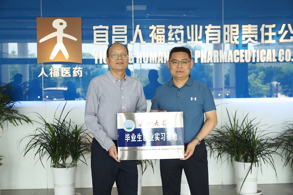 在宜昌人福药业有限责任公司,高梦祥一行与该公司副总裁李敬、人力资源部部长牟鑫、人力资源部经理谭子豪等领导开展交流座谈,参观文化展厅,并进行毕业生就业实习基地签约及授牌。