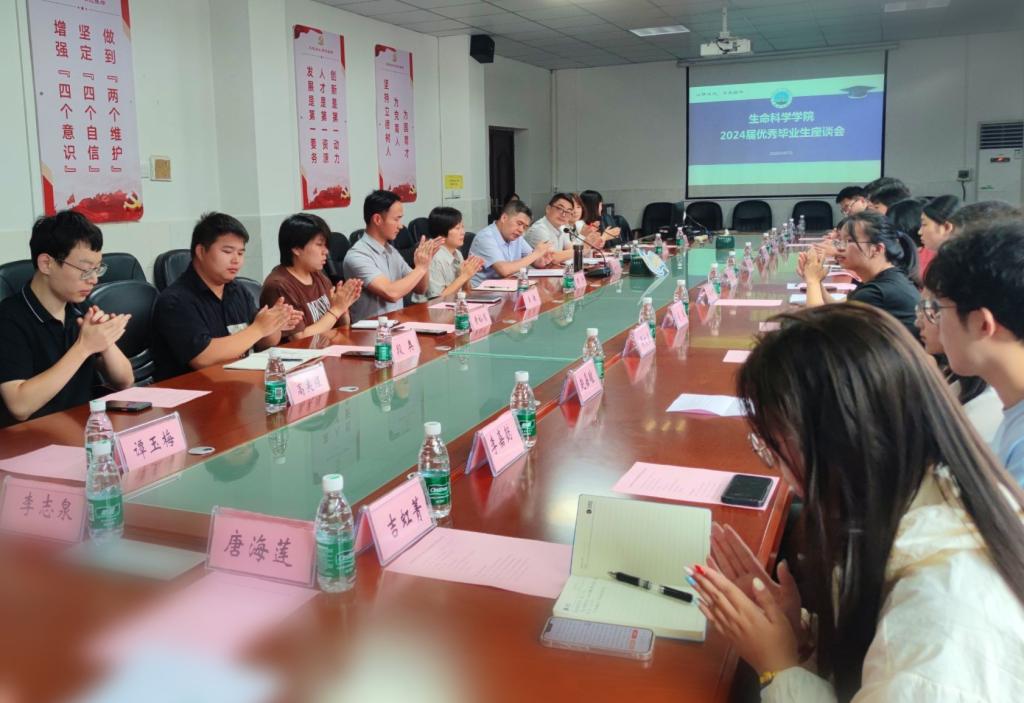 在西校区一教217会议室召开2024届优秀毕业生座谈会。全体院领导、20位本、硕优秀毕业生代表齐聚一堂,共同回顾青春时光,分享成长感悟,展望未来之路。学院党委副书记万波主持会议。
