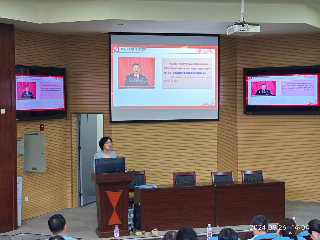 邀请荆州市委宣讲团成员、马克思主义学院党委书记刘小燕,为全院教职工、学生代表宣讲党的二十届三中全会精神。