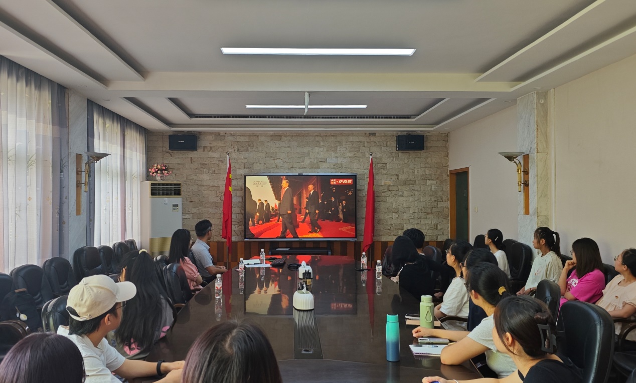 组织在校师生在1教217会议室和行政楼323会议室集中收看了大会及阅兵直播盛况,共同回顾历史、缅怀先烈、坚定信念。