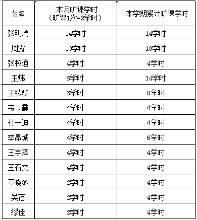 课堂考勤实施办法》,经学工办研究决定,对旷课4学时以上同学予以通报批评: