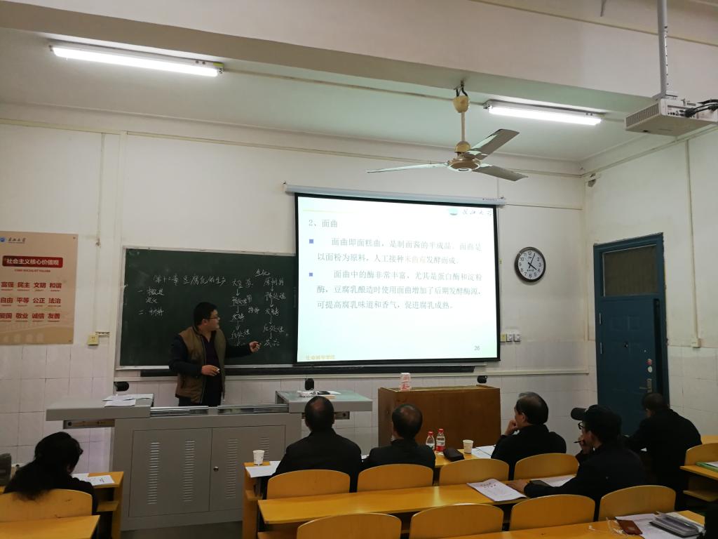 在教授“豆腐乳的生产过程”时,张东辉老师列出腐乳制作的五个流程,并不断向同学们发问:“豆腐乳有哪些益处呢?为什么是这种口感呢?评价指标又是什呢?”引导同学们深刻思考。课堂上气氛活跃,同学们踊跃作答。