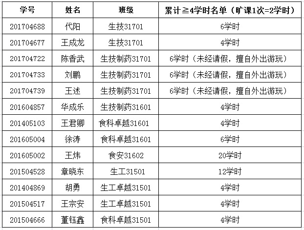 希望以上同学能认真反思,积极改进,自觉维护课堂纪律,共同营造优良学风。