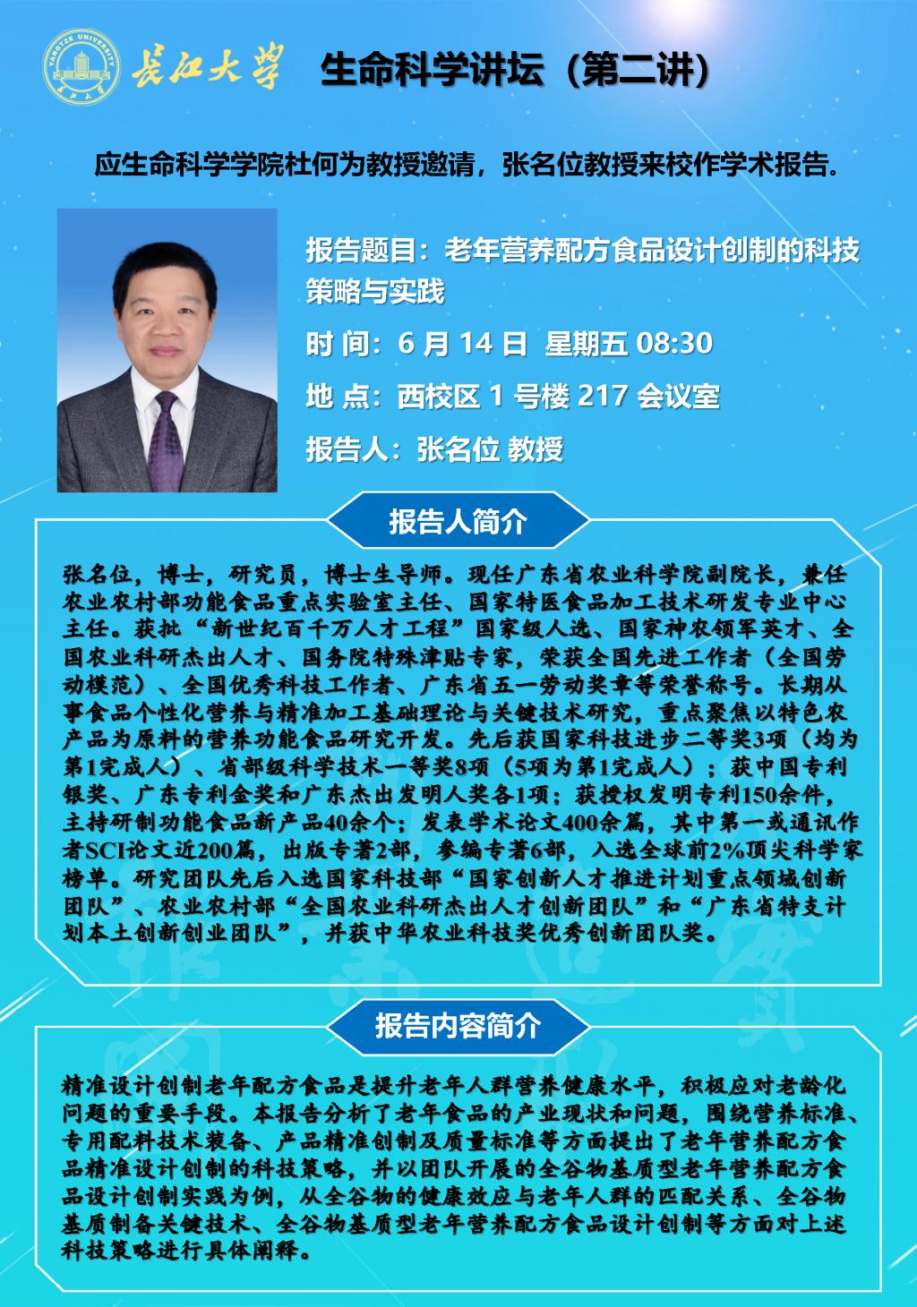 生命科学讲坛(第二讲):老年营养配方食品设计创制的科技策略与实践