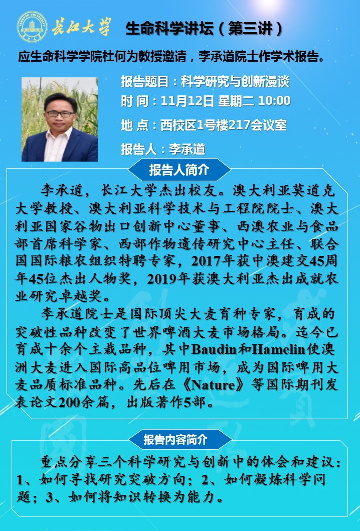生命科学讲坛(第三讲):科学研究与创新漫谈