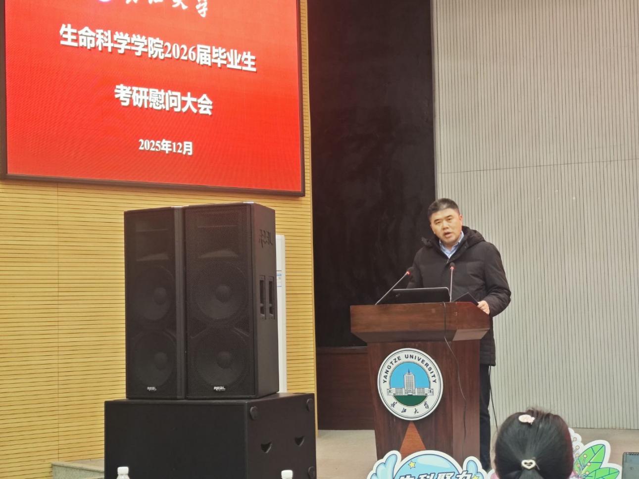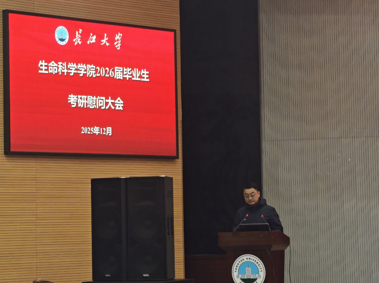 于农科大楼 1058 教室举办考研慰问会,院长杜何为、党委书记谢作喜等学院领导及全体辅导员、考研学子参会。
